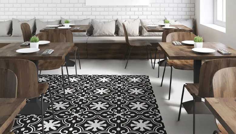 Los suelos para cafeterías fabricados en materiales cerámicos son los más resistentes del mercado. Merece tu atención que la cerámica ha experimentado una transformación muy notable, puesto que ahora hay una gran disparidad de estilos, colores y figuras geométricas para que personalices el suelo de acuerdo con la línea decorativa de tu negocio.