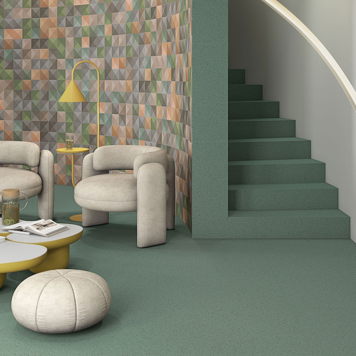 Das Exa-Produkt der Marke Vives ist Teil der Zepto-Kollektion, die sich durch sein kleines Format von 13x13 cm und eine große Auswahl an Farben und Oberflächen auszeichnet.