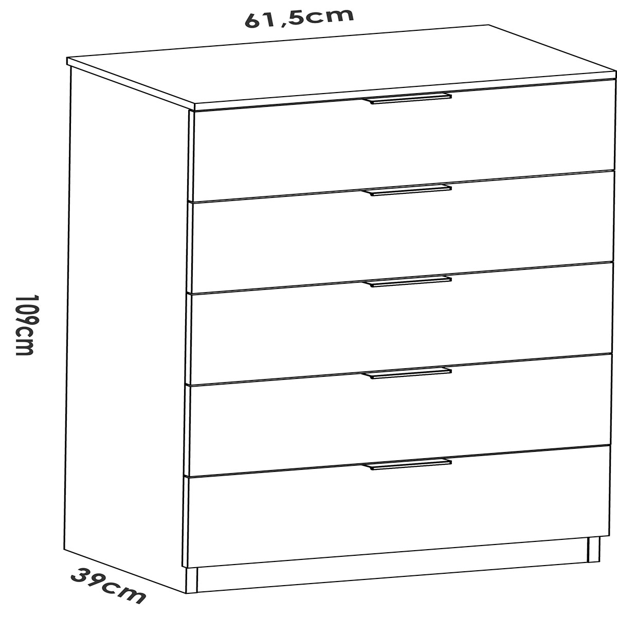 The Lago Xifonier with 5 White Drawers from Dekit is a practical and elegant piece of furniture ideal for modern bedrooms. Made of 16 mm thick melamine, its compact design (60.2 cm wide, 109.7 cm high and 39 cm deep) offers ample storage space.