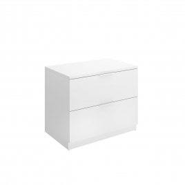 It has two drawers with metal guides that ensure smooth and durable movement. Its 16 mm thick melamine structure, with a white finish, provides a modern and versatile style, combining with different decorations.