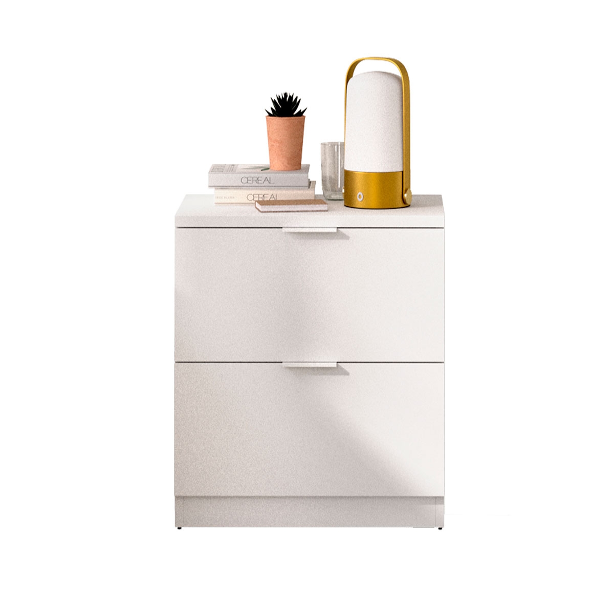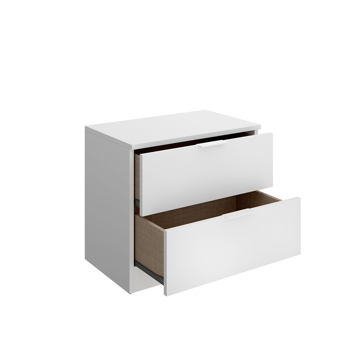 The Lago 2 Drawer White Nightstand product from Dekit combines functionality and modern design. With dimensions of 50.3 cm wide, 46 cm high and 34.2 cm deep, it offers two large drawers with smooth sliding metal guides and textile interior finish.