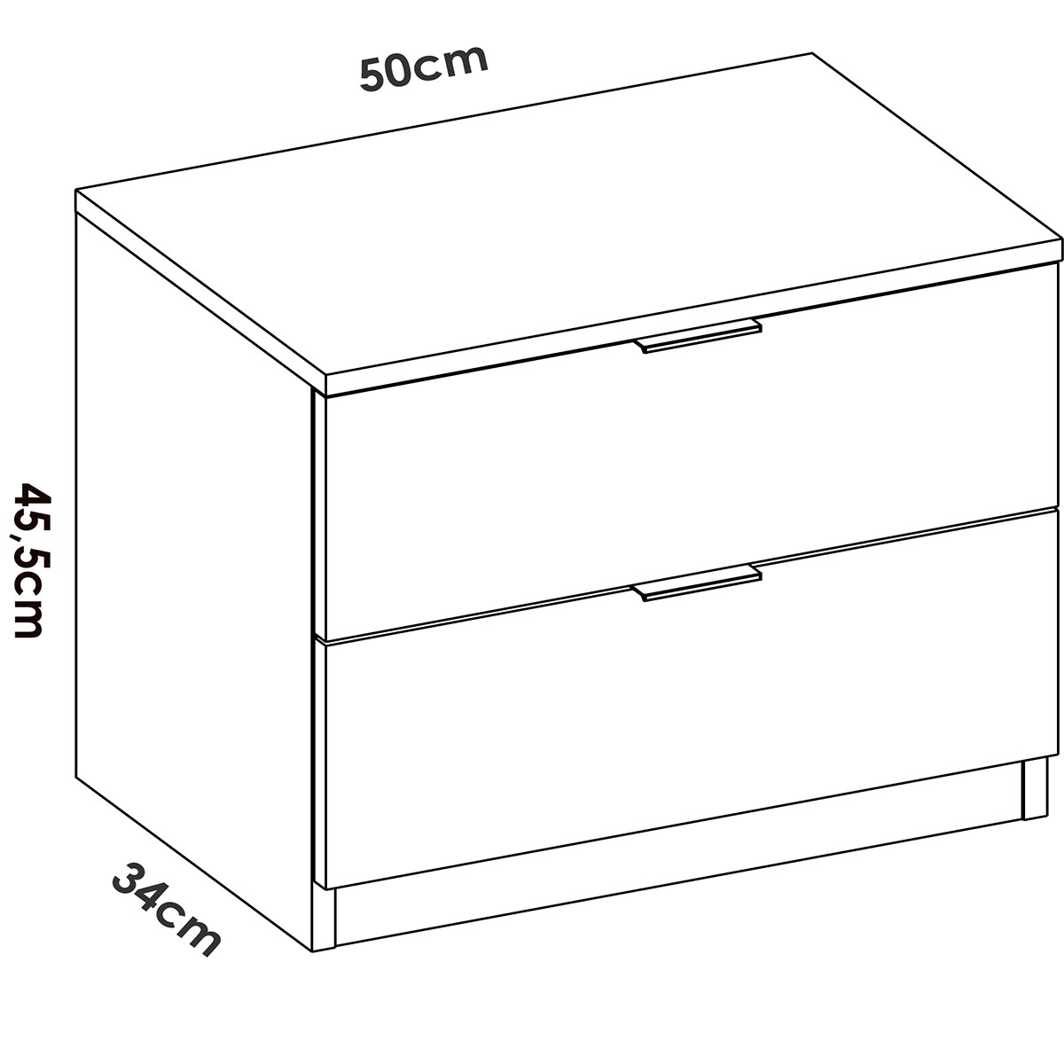 The Lago 2 Drawer White Nightstand product from Dekit is an excellent choice for those looking for elegance and functionality. Its compact design (50.3 cm wide, 46 cm high and 34.2 cm deep) allows you to optimize space without sacrificing storage.