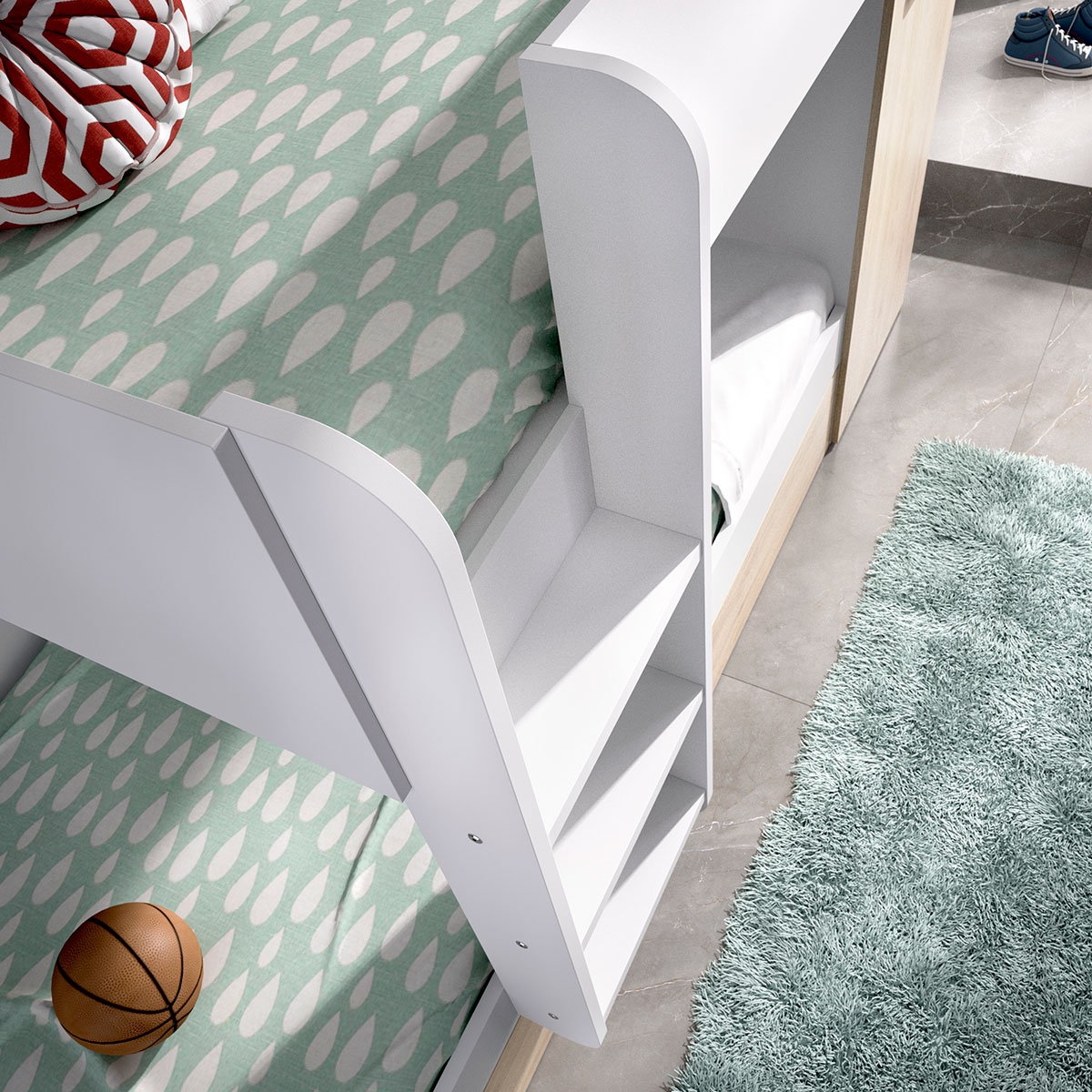 The finish in white and natural tones gives a modern and bright touch to the room, combining with different types of decoration. In addition, the resistant material ensures durability, offering peace of mind to parents.