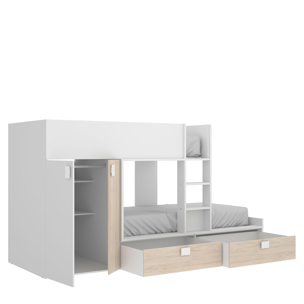 Each bed is equipped with a sturdy bed base and has comfortable measurements to rest properly. The option of having two beds, one on top of the other, is perfect for making the most of the space, whether for sleeping or for other activities.