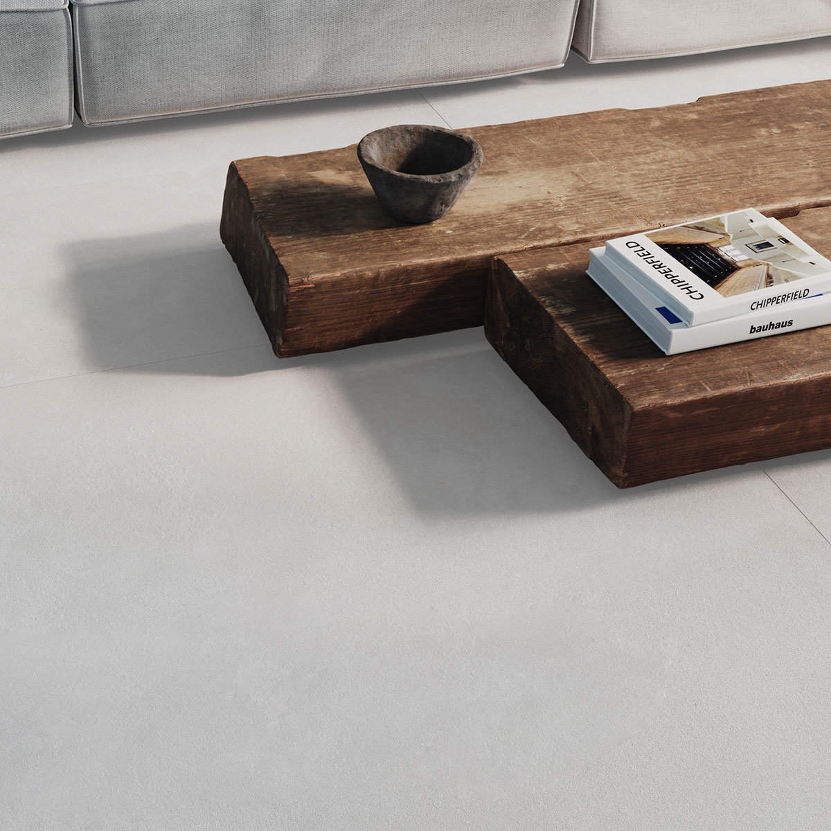 Khala White 120x120 by Argenta is a high-quality porcelain floor, ideal for modern interiors. Its white matte finish stands out for its purity and luminosity, creating a fresh and spacious atmosphere in any space.