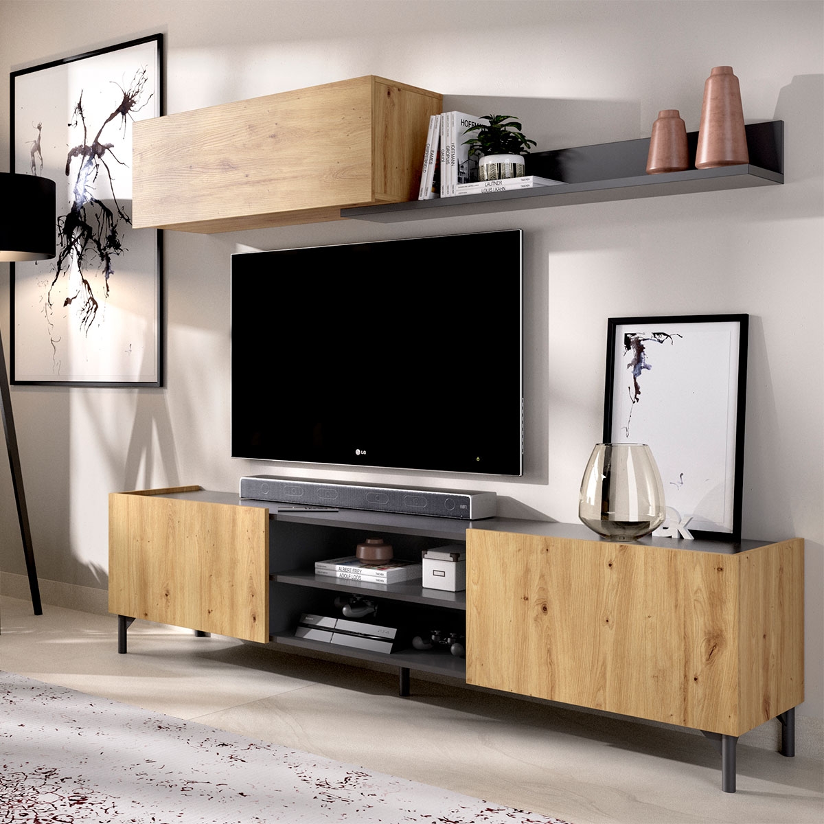 The Tass Compact TV Nordic/Graphite Dekit is a modern and practical option , perfect for making the most of space in the home without sacrificing style. With a combination of Nordic and Graphite colors, this furniture adapts to any type of decoration.
