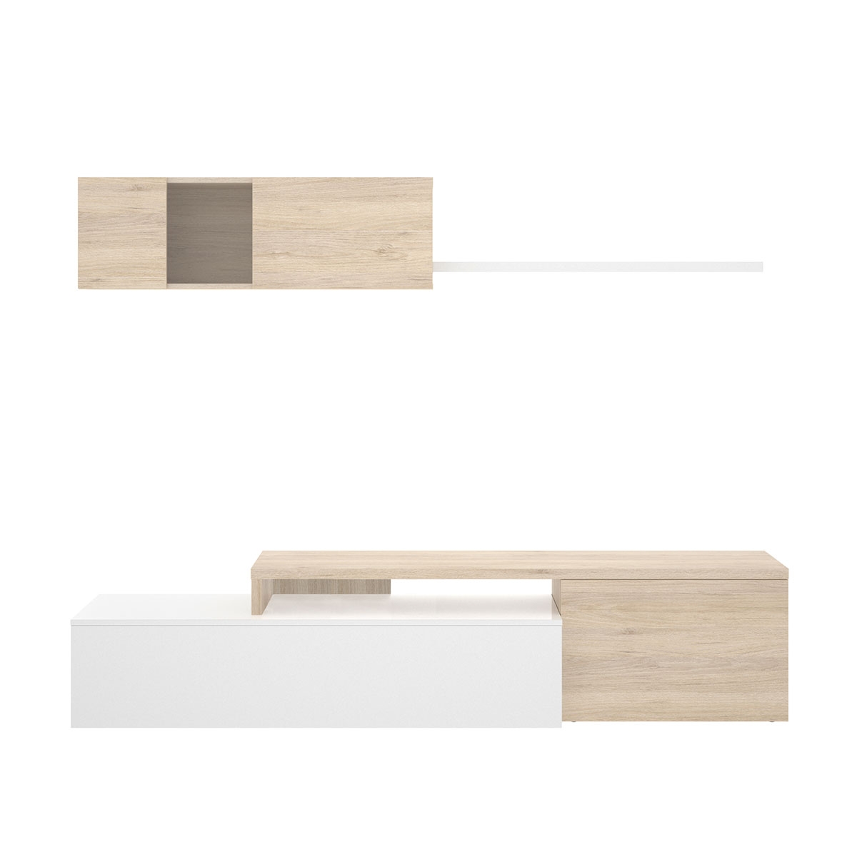 The Elle Compact Lounge TV White Gloss/Natural from Dekit is a modern and functional piece of furniture, ideal for those looking to optimize space without sacrificing style. With a glossy white finish and natural details, this furniture has a compact design that perfectly adapts to small environments.