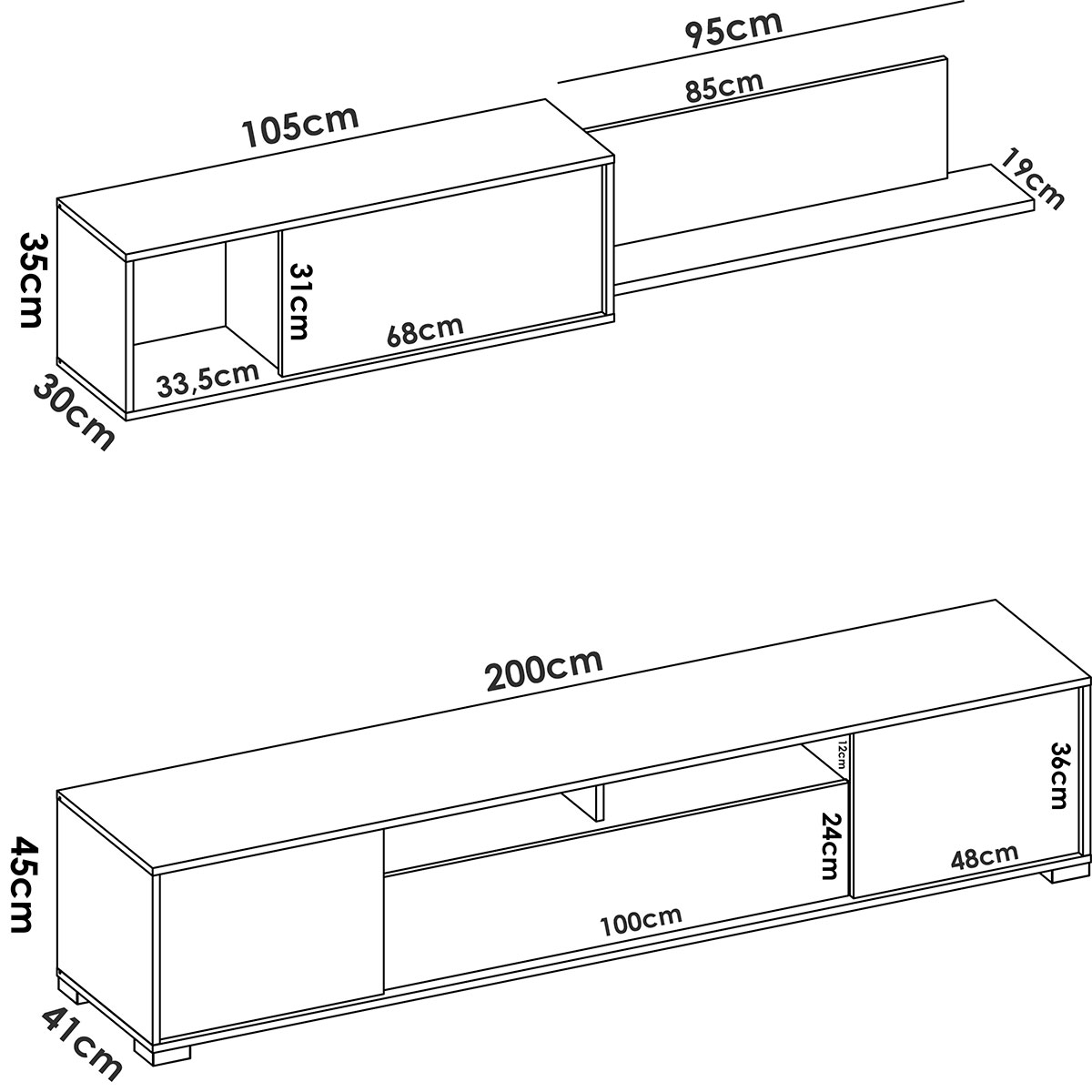 Its doors offer a hidden storage solution , while the top shelf provides an ideal place to place electronic devices. Perfect for making the most of space without sacrificing aesthetics, the furniture is suitable for both homes and offices.
