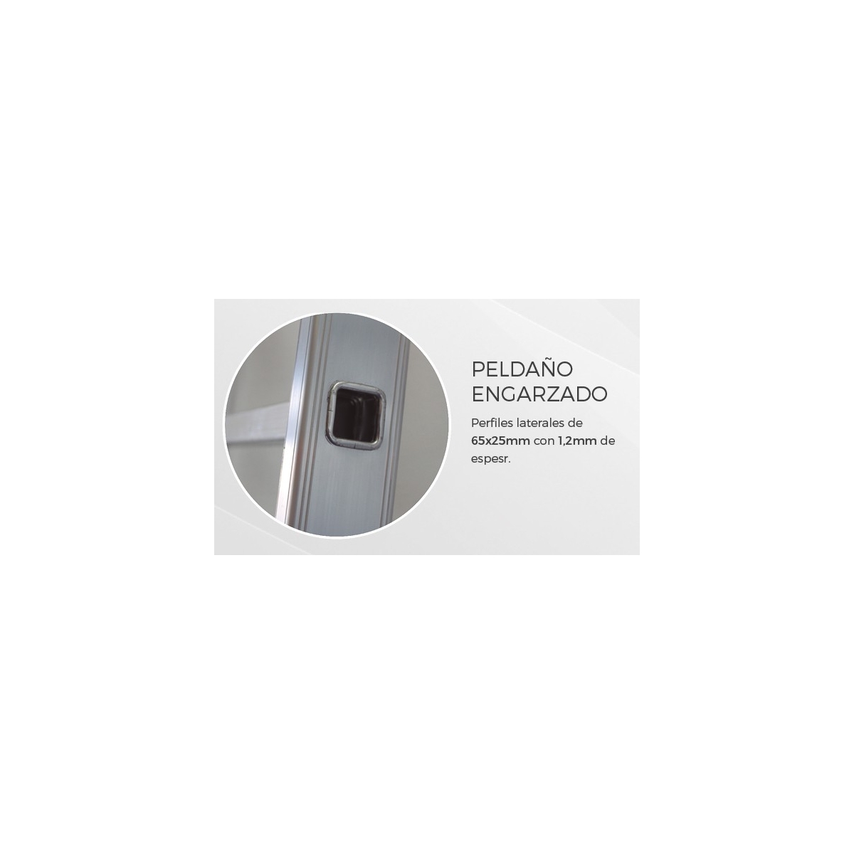 Professional extruded aluminum ladder. Non-slip rubber front studs and 90cm stabilizing base to ensure a better grip. Characteristics