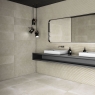 Its matte finish in beige, along with a subtle relief of decorative stripes, brings texture and dynamism to the walls, creating modern and elegant environments. With dimensions of 31x98 cm and rectified edges, it allows installation with minimum joints of 1.5 mm, achieving a continuous and uniform appearance.