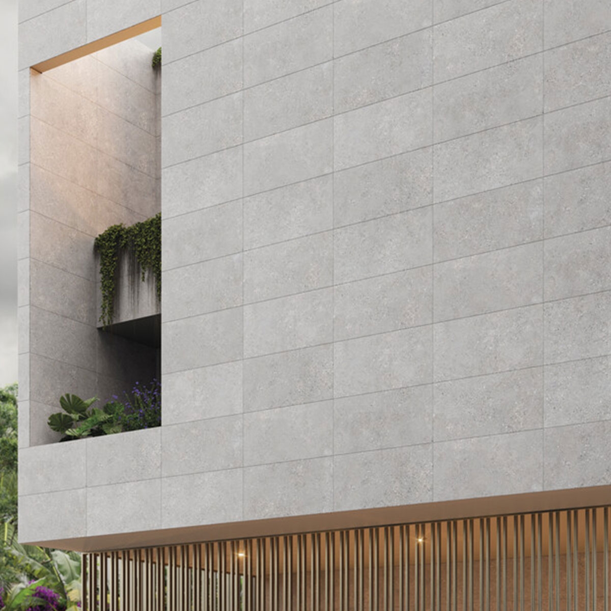 Avec un format de 60x120 cm et une épaisseur de 14 mm, il est idéal pour couvrir les façades ventilées grâce à sa facilité de manipulation et d’installation à l’aide d’agrafes cachées.