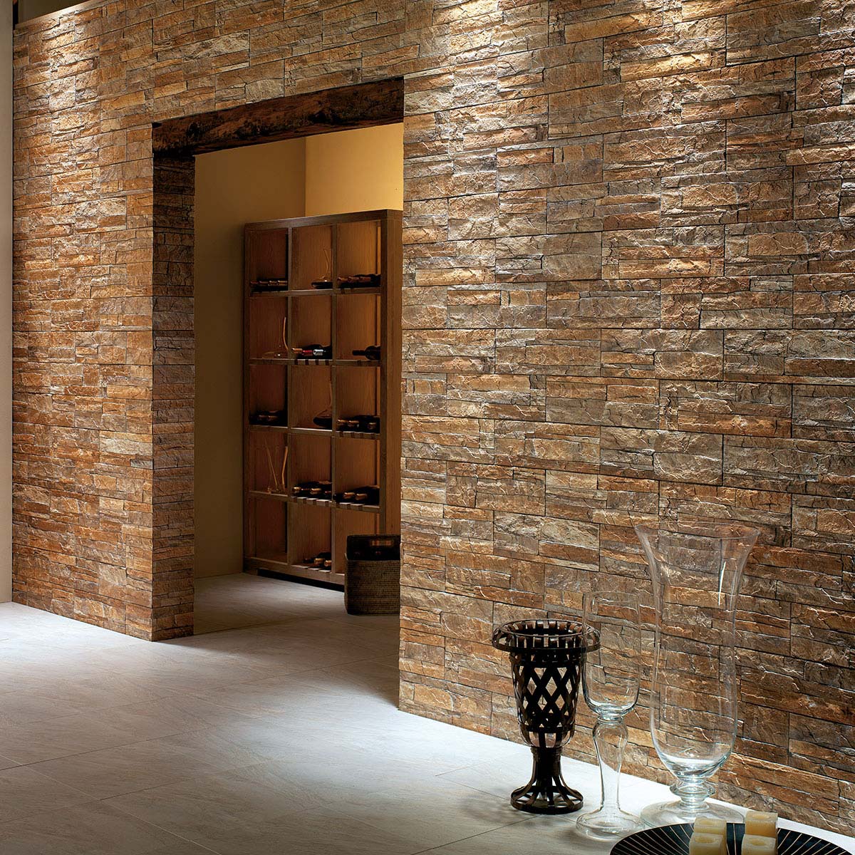 Revestimento cerâmico de pasta vermelha imitando pedra. Cada modelo apresenta entre 4 e 6 relevos mistos em cada caixa. Além disso, cada relevo tem entre 6 e 8 desenhos, fazendo com que cada série tenha entre 30 e 50 peças diferentes.