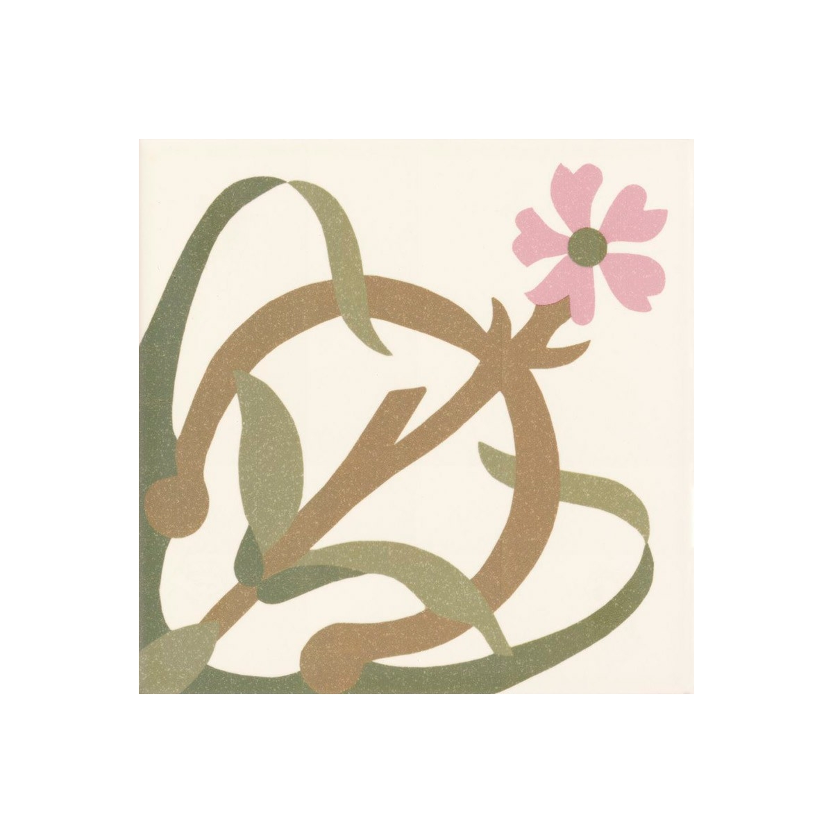 Seu design apresenta uma combinação de tons verdes, marrons e rosa em um fundo branco, dando-lhe uma aparência fresca e elegante, ideal para qualquer ambiente.