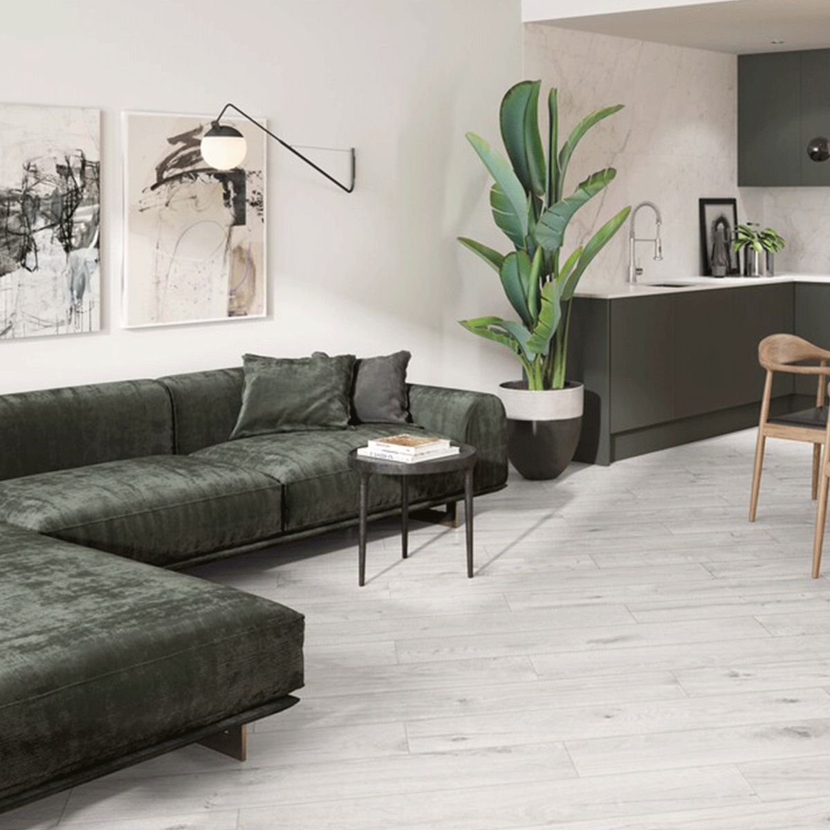 O Oland White Matte 23x120 (1.38m2) da Argenta é um pavimento de imitação de madeira que se destaca pelo seu acabamento mate e cor branca. O seu design elegante e moderno torna-o numa excelente escolha para quem procura um estilo minimalista e luminoso nos seus espaços.