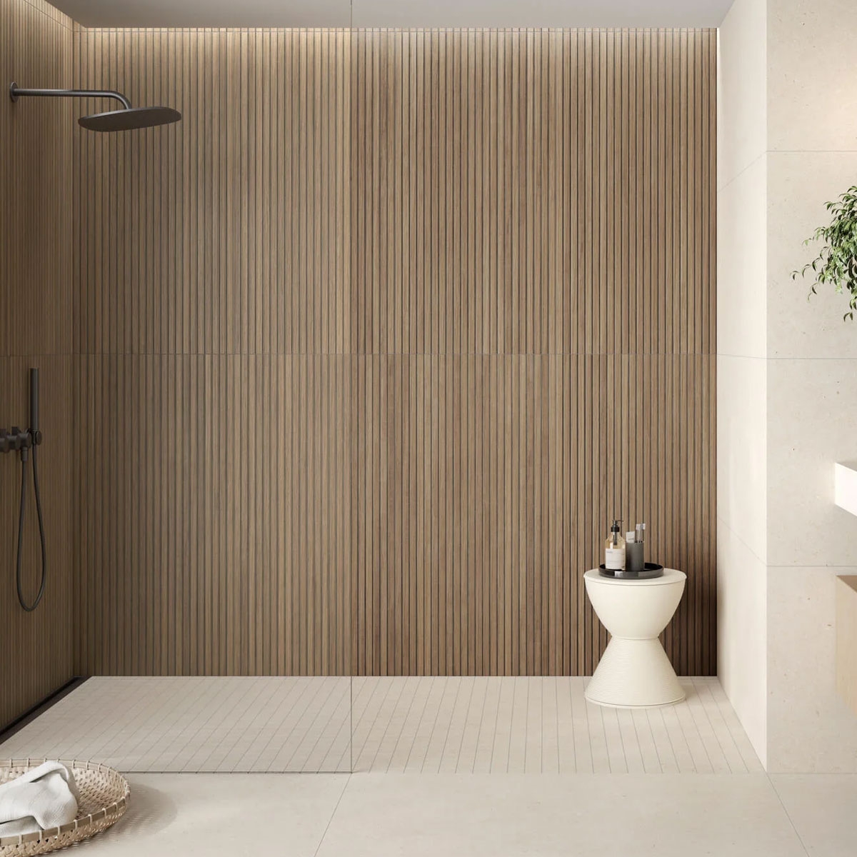 Este porcelanato retificado, com acabamento e textura naturais, é inspirado nas madeiras nobres japonesas, oferecendo uma estética acolhedora e sóbria que transforma qualquer espaço interior. O seu grande formato de 60x120 cm permite uma instalação com menos juntas, conseguindo um aspeto contínuo e mais limpo.