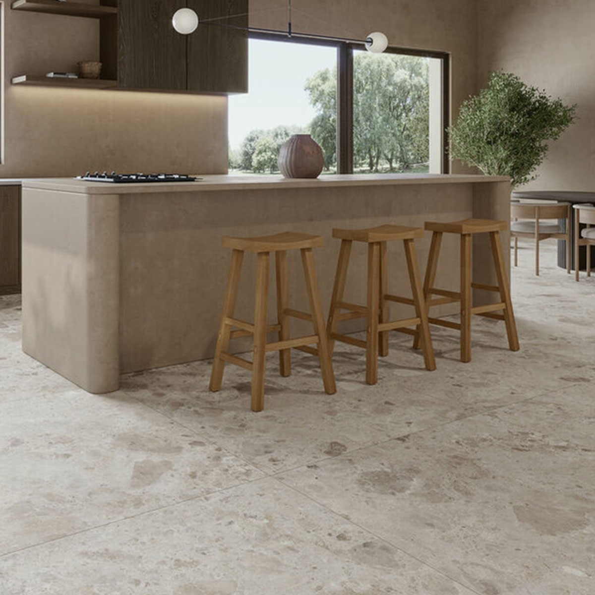 Este produto foi concebido para uso interior, proporcionando um aspeto contemporâneo que emula a beleza natural das pedras. Com um formato de 120x120 cm, é ideal para oferecer ampla cobertura em espaços como salas de estar, salas de jantar, corredores e quartos.