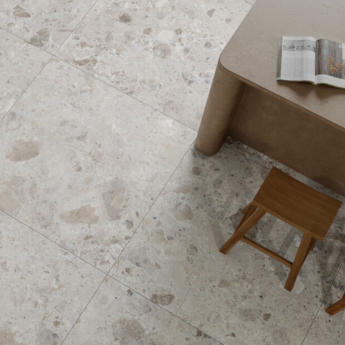 O Petra Taupe Mate 120x120 da Argenta é uma pedra de imitação de pavimento cerâmico que se destaca pelo seu acabamento mate e pela sua elegante cor castanho taupe.