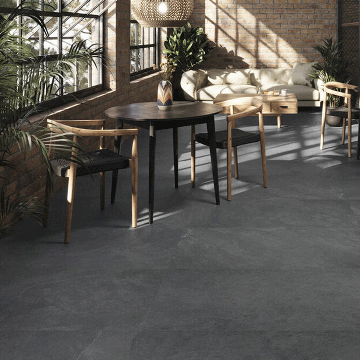Argenta Riven Escuro Fosco 60x120 é um pavimento cerâmico preto, ideal para dar um toque elegante e moderno aos espaços interiores.