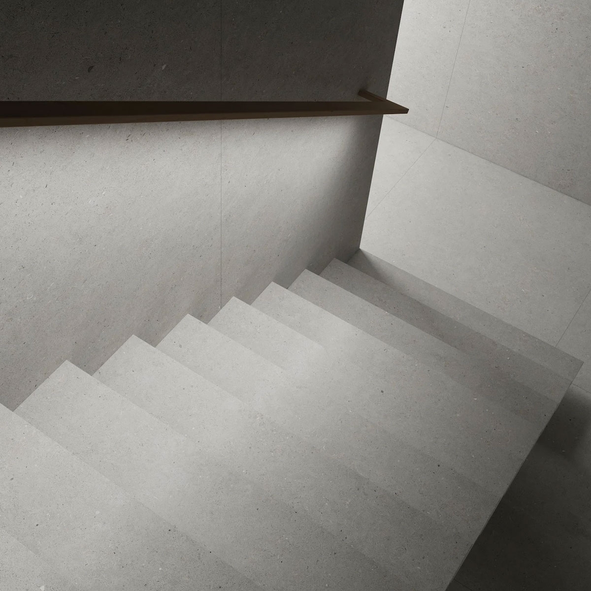 Caracteriza-se pela sua estética inspirada na pedra calcária fóssil, com um tom uniforme e sereno, sem veios marcados. Graças à borda retificada , sua conexão entre as peças é quase impercetível, permitindo juntas finas e um resultado muito homogêneo.