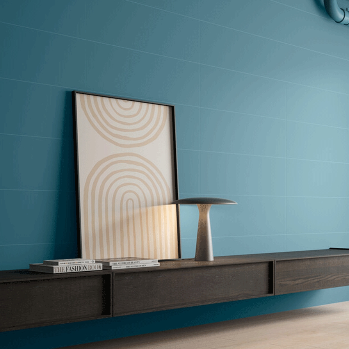 Sua cor azul profundo adiciona sofisticação, sendo perfeita para aplicações em paredes de salas, quartos, cozinhas ou banheiros, proporcionando elegância sem perder a funcionalidade.