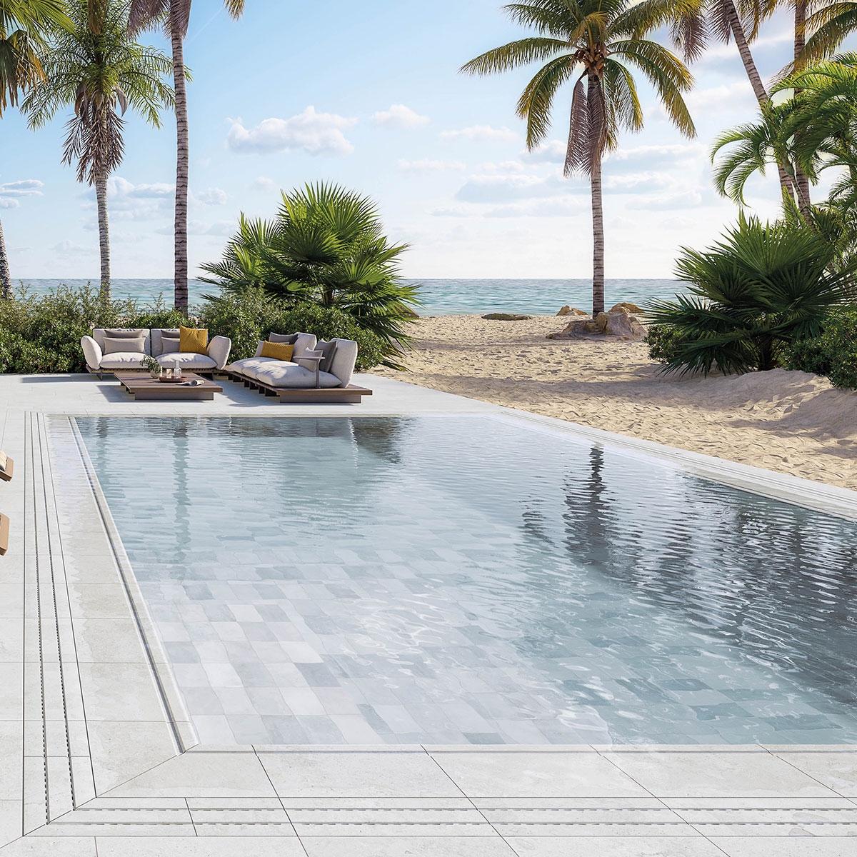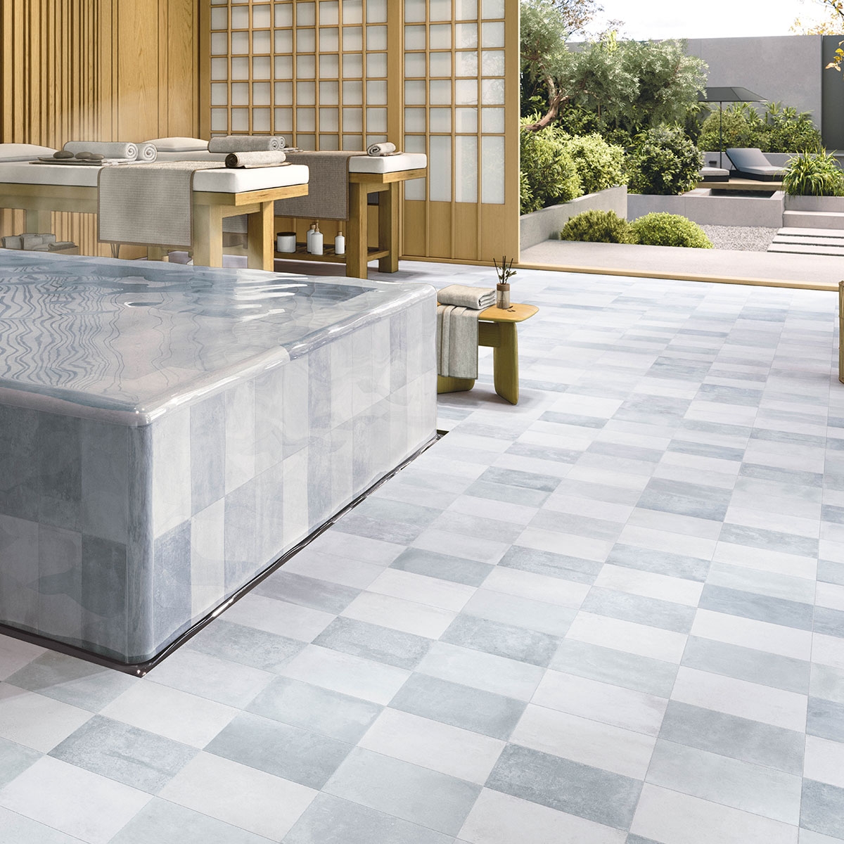 O seu grande formato realça a sensação de amplitude, enquanto o acabamento mate proporciona um estilo sóbrio e elegante. Graças às qualidades técnicas do grés, garante durabilidade contra uso intensivo e estabilidade em diferentes ambientes. Uma solução prática e estética.